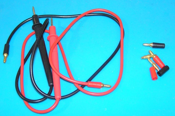 а вот со щупами возникла проблема, поскольку штепсельные гнезда рассчитаны на диаметр штекера 2.5 мм и стандартные 4 мм сюда не походят. Подходящие штекера были найдены на всем известном Али (ссылка) и из китайских же недорогих щупов для мультиметров были изготовлены щупы для Ц-437.
